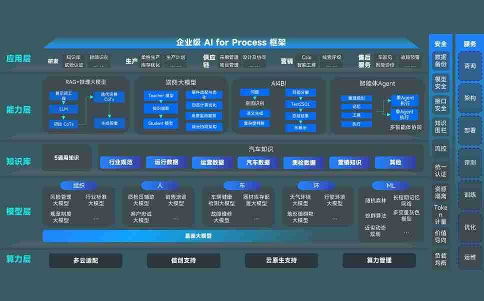 端到端的一站式AI工作空间深度融合了从企业战略规划到日常经营的全流程业务板块,,定向解决车企内部领域多、、部门多、、链条长、、场景碎片化等难题,,,,支持车企快速构建以AI为核心的生产力写作体系,,实现任务执行与AI能力的无缝集成与交互